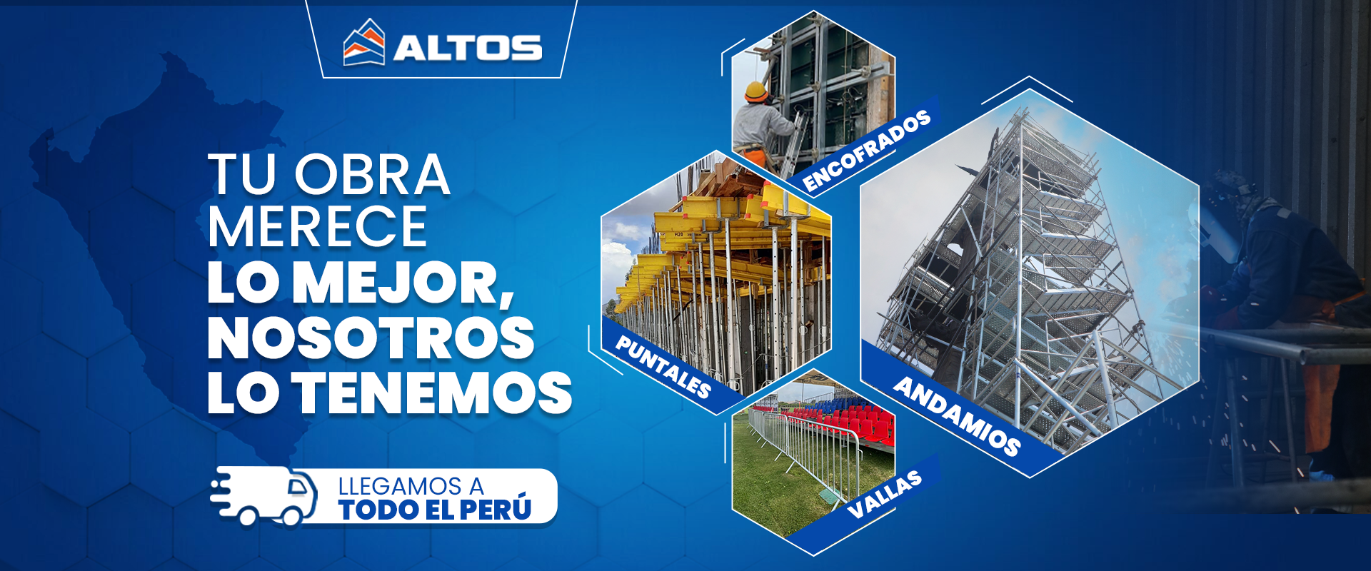 Somos líderes en la fabricación y comercialización de andamios, puntales, encofrados, vallas de seguridad, graderías, escenarios y estructuras metálicas para la construcción y eventos.